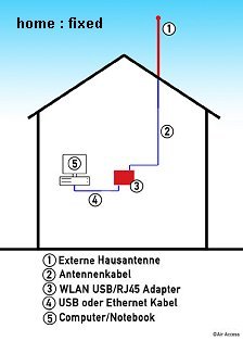zentralen Punkt in Ihrem Ort per Satellitenverbindung oder über eine fixe Internetanbindung.